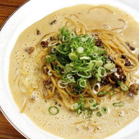 将意面与煮好的虾和贝等海鲜类以及番茄酱汁一起混合的料理。