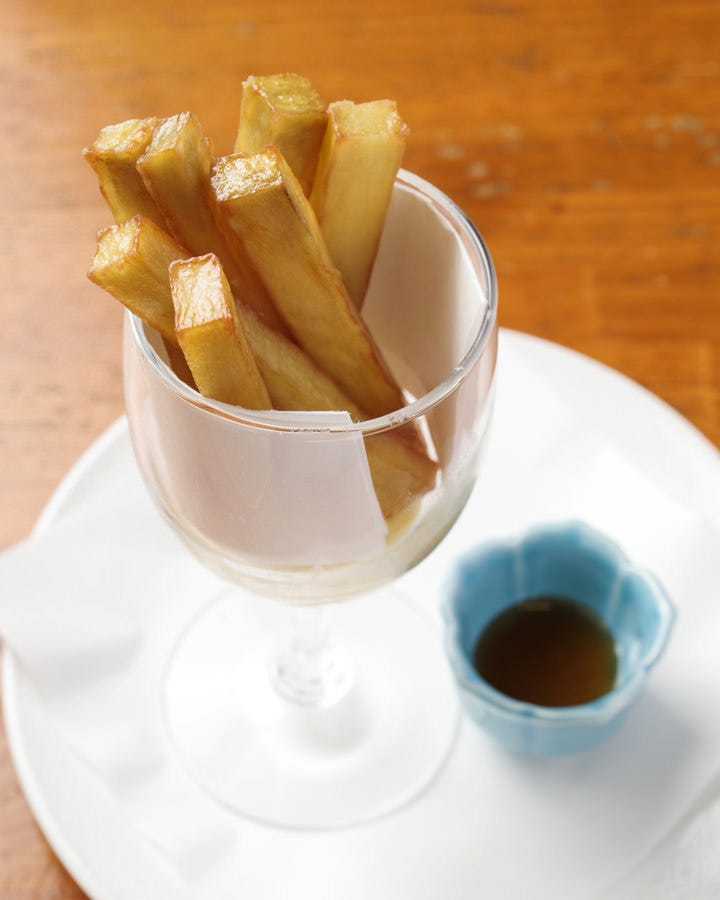 将入味的牛蒡裹上薄薄一层面浆,用油炸制而成的料理。
