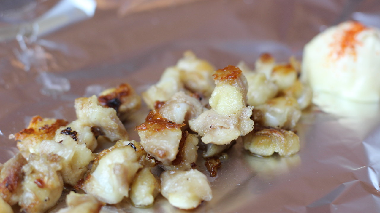 将鸡脖子用铁板烧烤的料理。