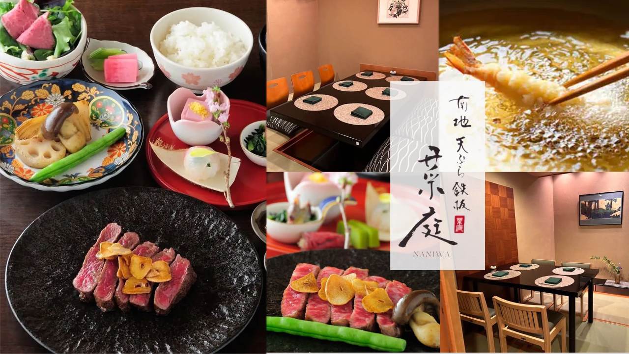 在利用时令食材的同时,我们重视食材本身的味道,并推出新的口味。店内设有可以观看烹饪过程的座位,以及舒适的餐桌座位,适合纪念日、生日、各种宴会等各种场合! 迎送会 120分钟无限畅饮宴会套餐 生鱼片3种、黑毛和牛铁板烧、天妇罗等8道菜品 10,000日元 推荐套餐 时令天妇罗樱花套餐 7,000 日元 黑毛和牛铁板烧套餐 -梅子 - 8,000 日元 时令天妇罗和黑毛和牛铁板烧的豪华套餐 -浪速 - 12,000 日元 各种套餐附赠 120 分钟无限畅饮,另加 2,000 日元 *预约仅限4人以上 仅限午餐套餐 2,500日元起 您可以根据场合享用天妇罗或牛排套餐。