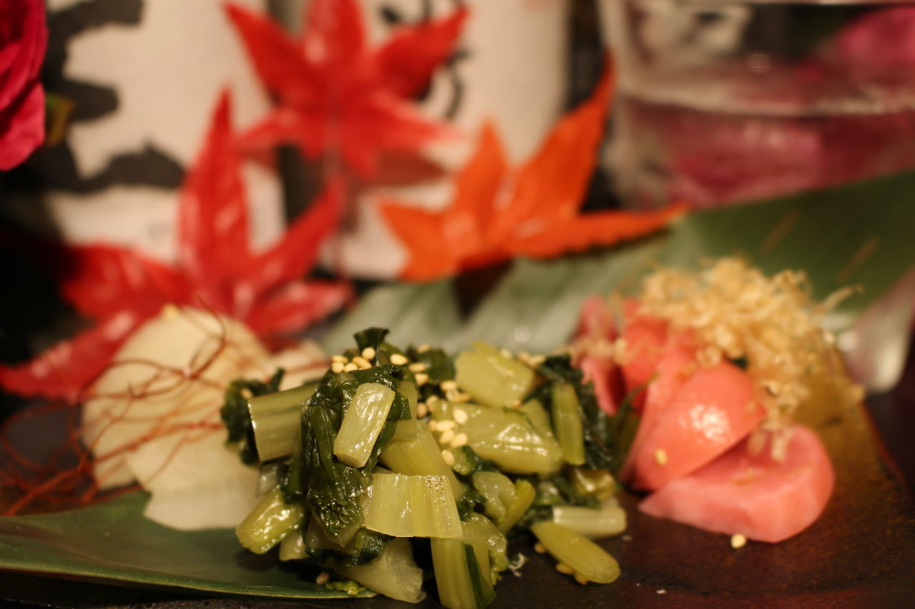 将食材和调味料(盐,米糠,醋,味噌,酱油等)一起腌制而成的料理。