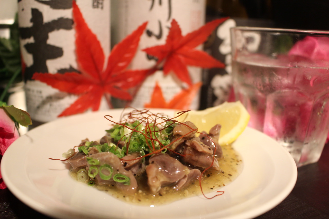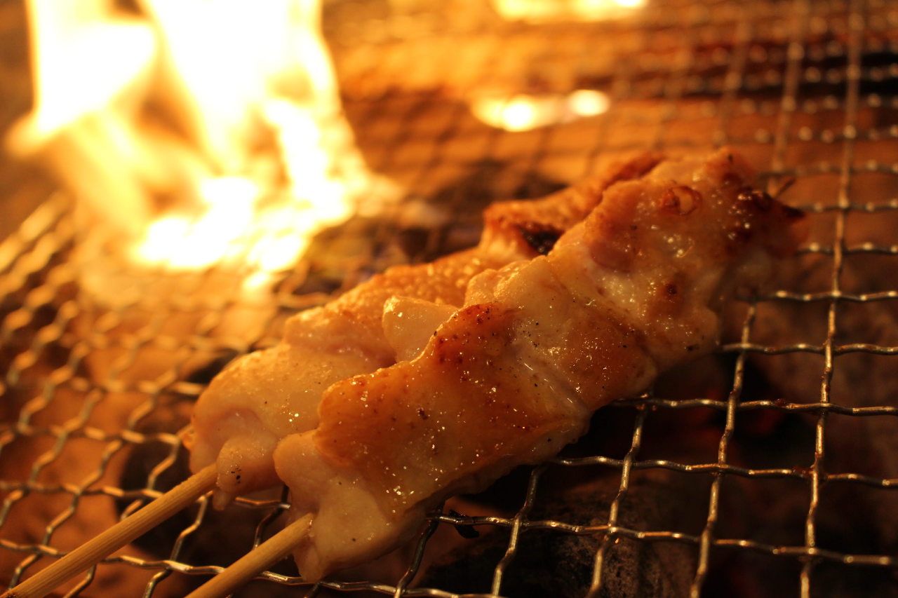 是把腌好分成一口大小的鸡肝串成一串,然后以火直接烧烤的料理。