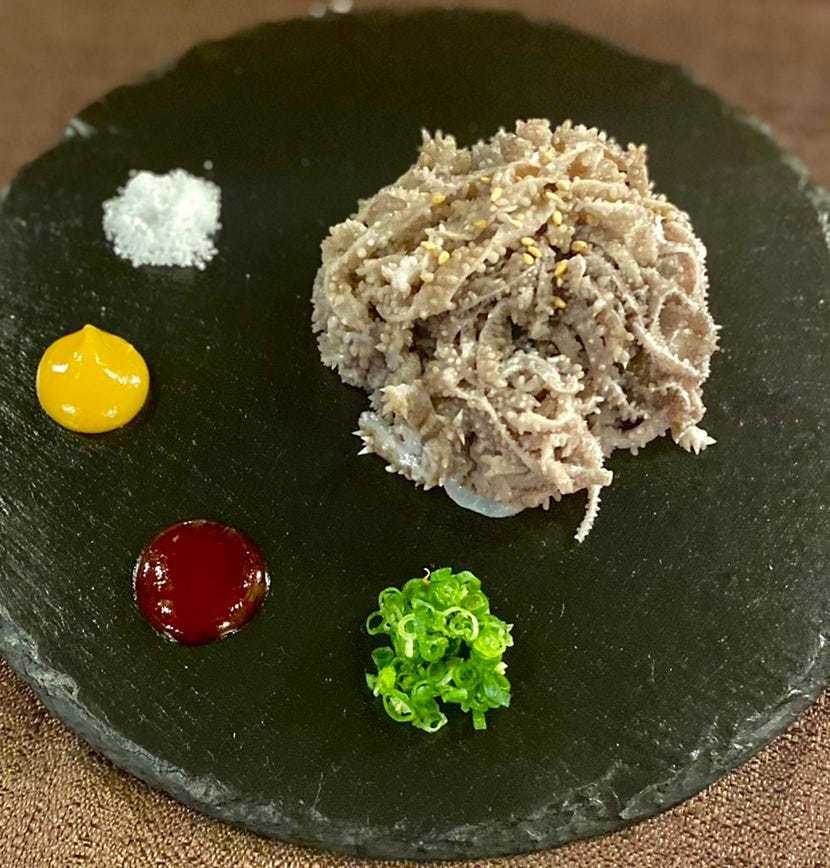 将被称作舌底肉的牛舌下面的部分烤制而成的料理。