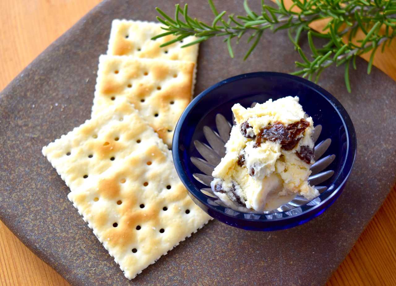 先将葡萄干用朗姆酒腌制好,然后和黄油搅拌融合而制成的西洋点心。