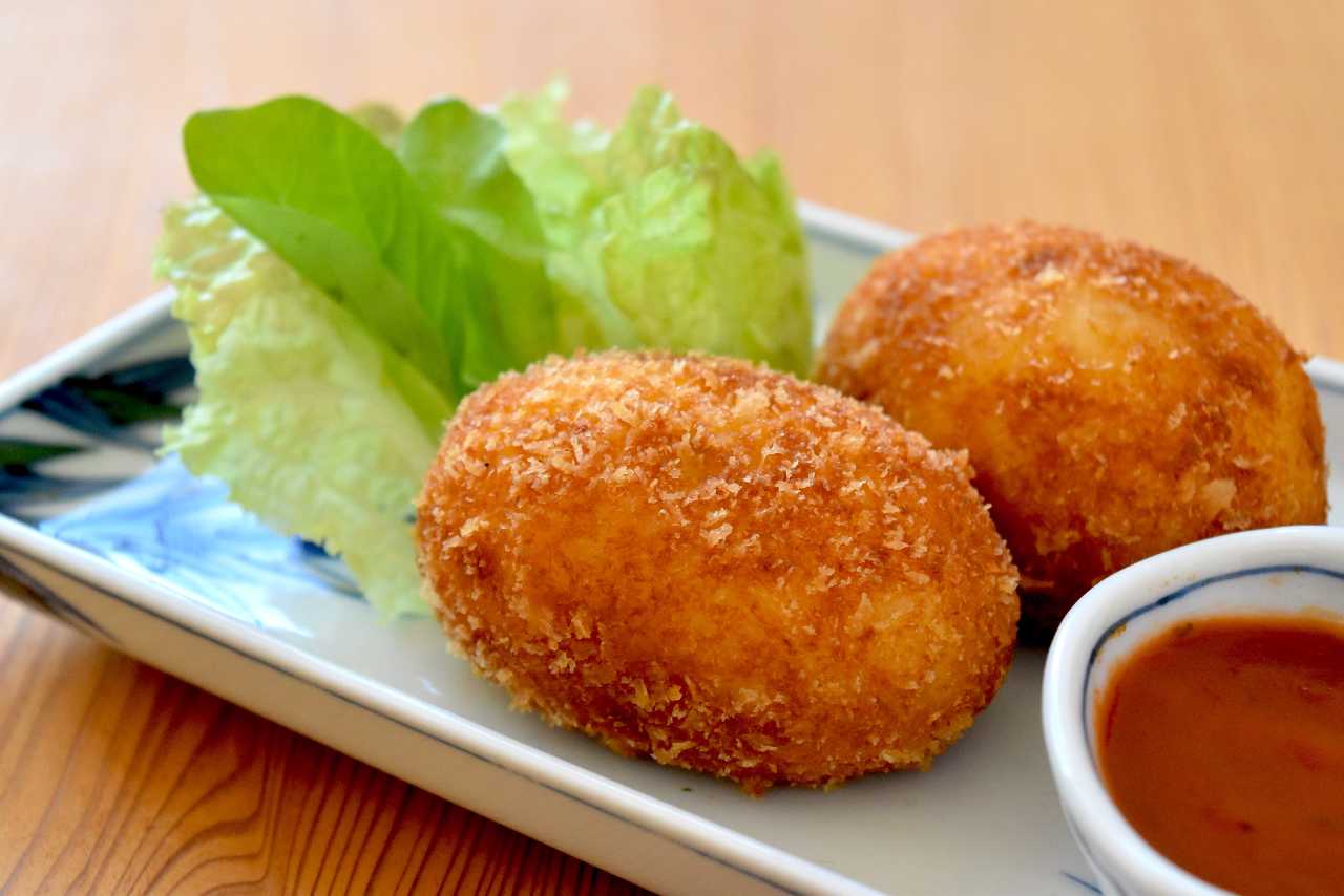 将黄油和小麦粉等翻炒,再将用牛奶搅拌的材料裹上面包屑用油炸制而成的料理。