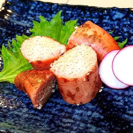 将盐腌的鳕鱼内脏与芝麻油和辣椒等调味料调拌而成的料理。