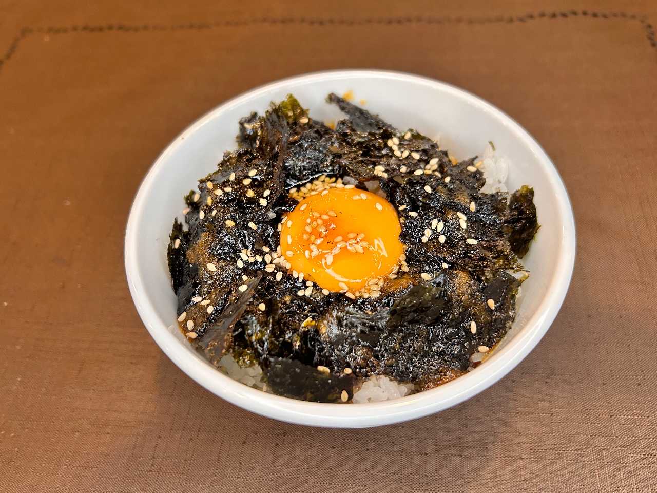 牛肉, 小油菜, 胡萝卜, 大蒜, 白饭, 蛋黄, 海苔, 泡菜