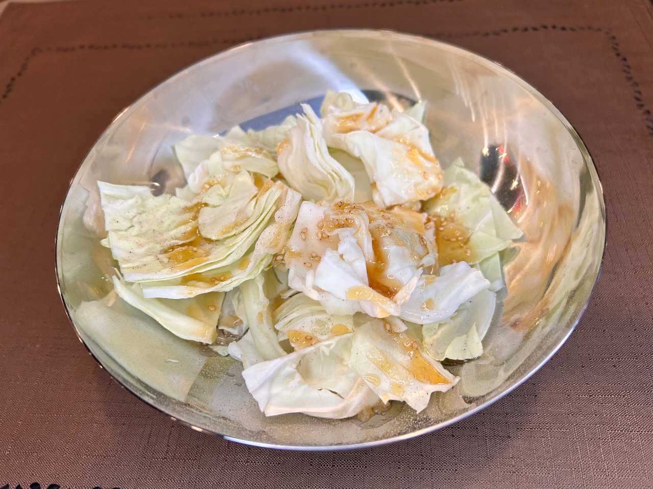撕成一口大小的莴苣和蔬菜上浇上芝麻油和食盐等食用的沙拉料理。