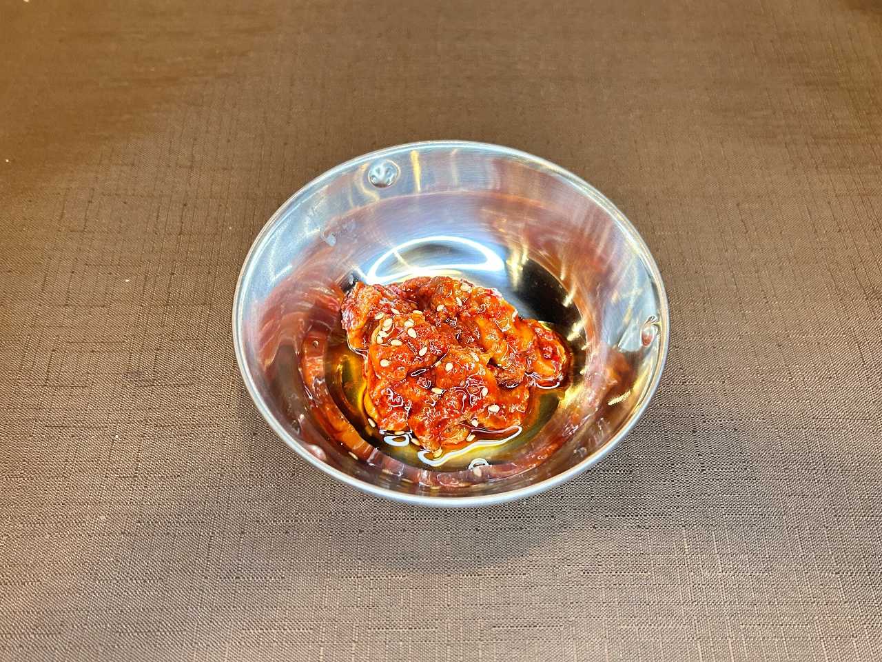 将盐腌的鳕鱼内脏与芝麻油和辣椒等调味料调拌而成的料理。