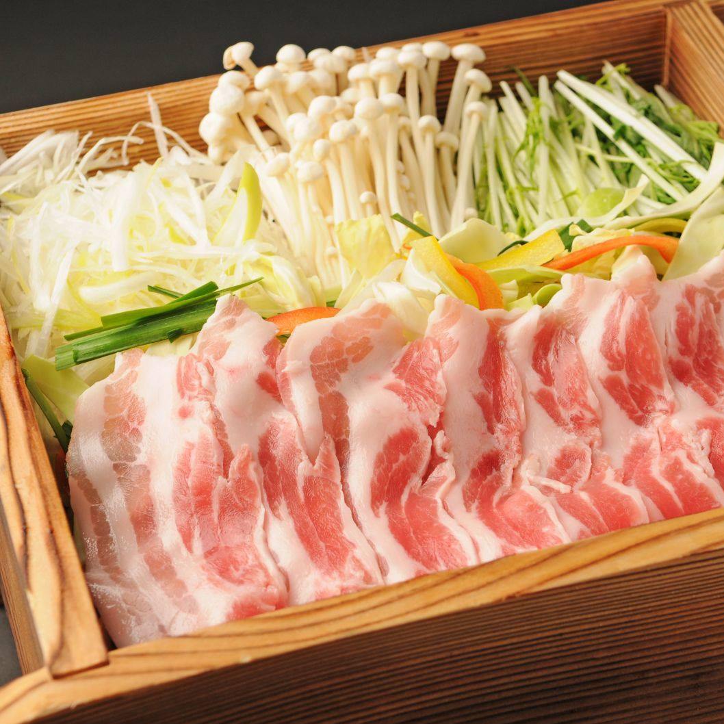 豬肉, 甘藍菜, 金針菇, 大蔥, 韭菜, 水菜, 豆芽菜, 香菇, 彩椒