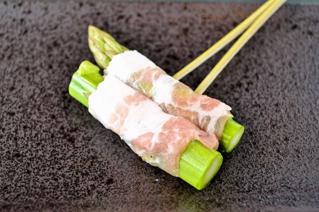 用肉將蘆筍捲起來炸製的料理。 |