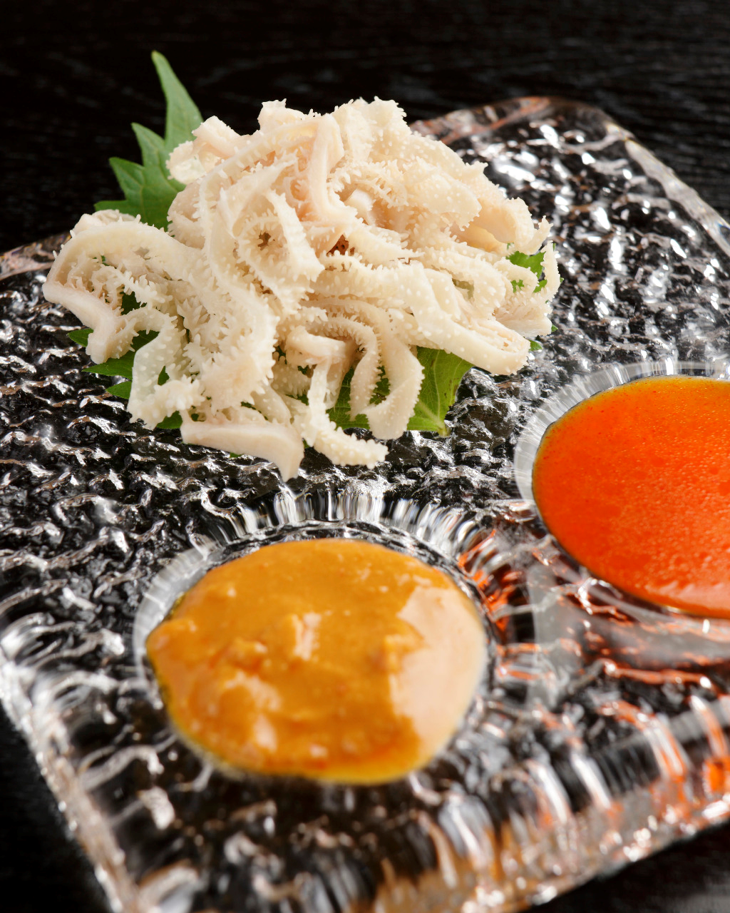 將鹽醃的鱈魚內臟與芝麻油和辣椒等調味料調拌而成的料理。