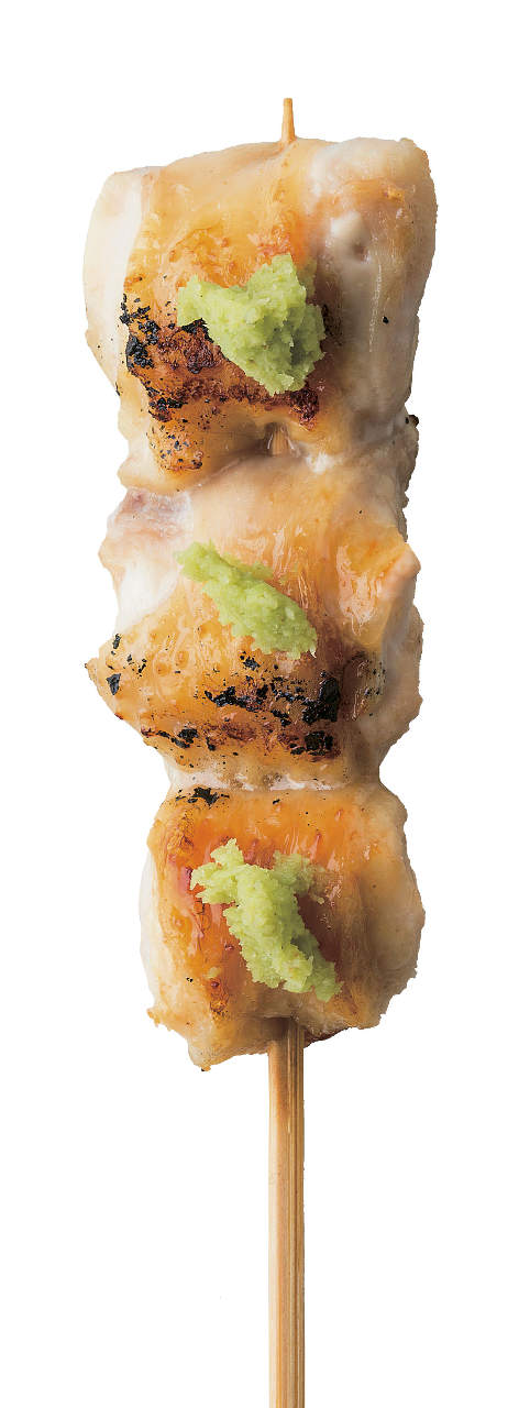 是把雞胸骨前端的軟骨串成一串,然後以火直接燒烤的料理。