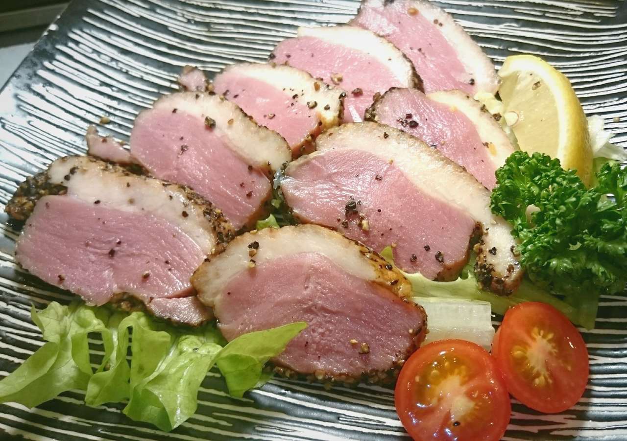 以用高溫木材發出的煙來煙燻合鴨肉,具有風味之料理。