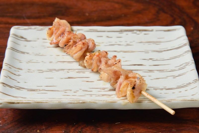 是把雞胸骨前端的軟骨串成一串,然後以火直接燒烤的料理。
