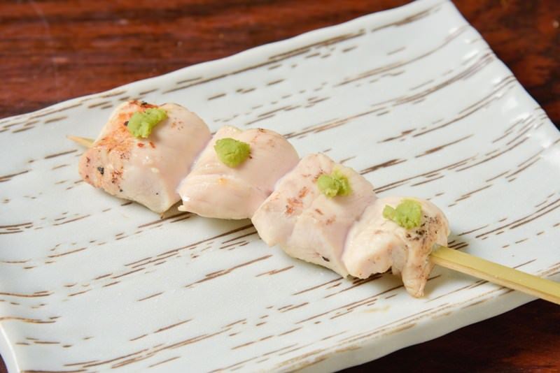 將被稱作小胸肉的雞肉表面炙烤,再蘸山葵食用的料理。