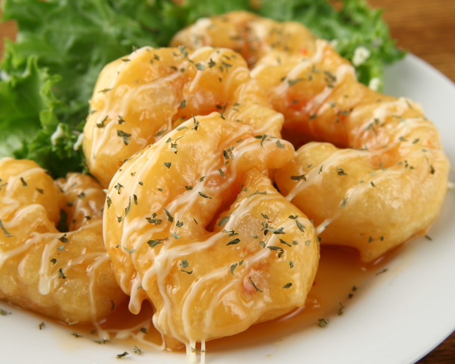 燒烤用馬鈴薯做成的丸子,並用甜鮮的醬料去調味的料理。