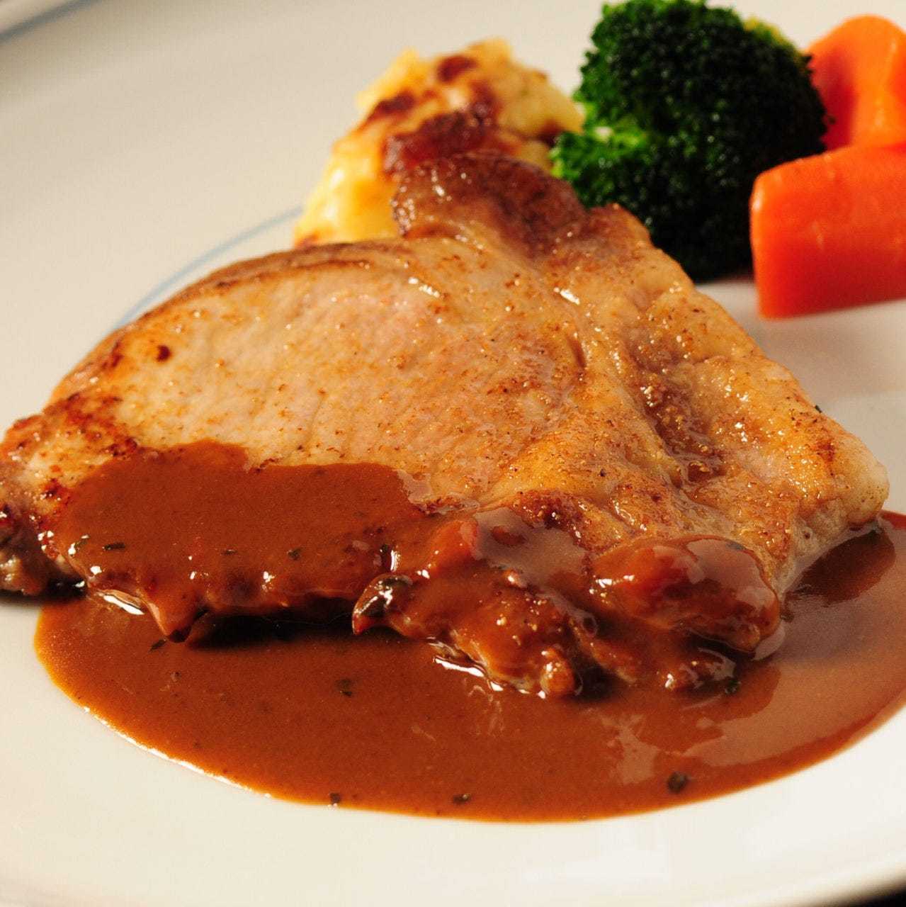 用厚切被稱作沙朗部位的肉煎製而成。