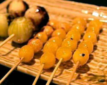 是把鵪鶉(雞蛋)串成一串,然後以火直接燒烤的料理。