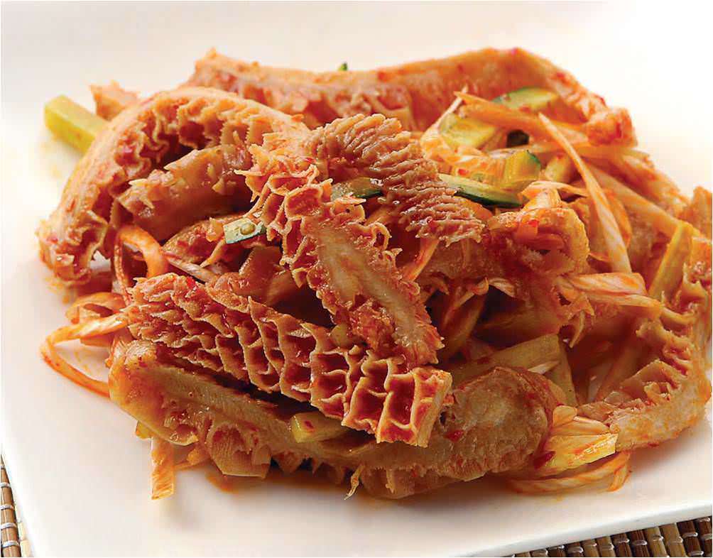 使用被稱作金錢肚的胃部肉類料理。 |