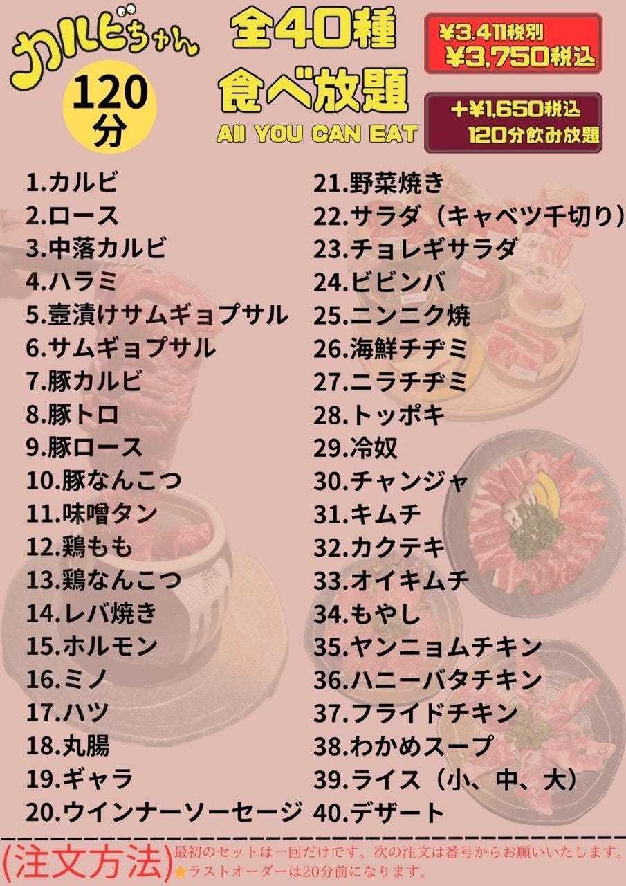 【120分】食べ放題〈全40品〉3,411円(税抜)
