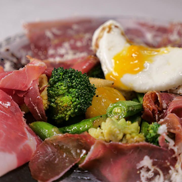 將牛肉的表面烤製後切成薄片,澆上義大利香醋醬再裝飾上蔬菜的料理。