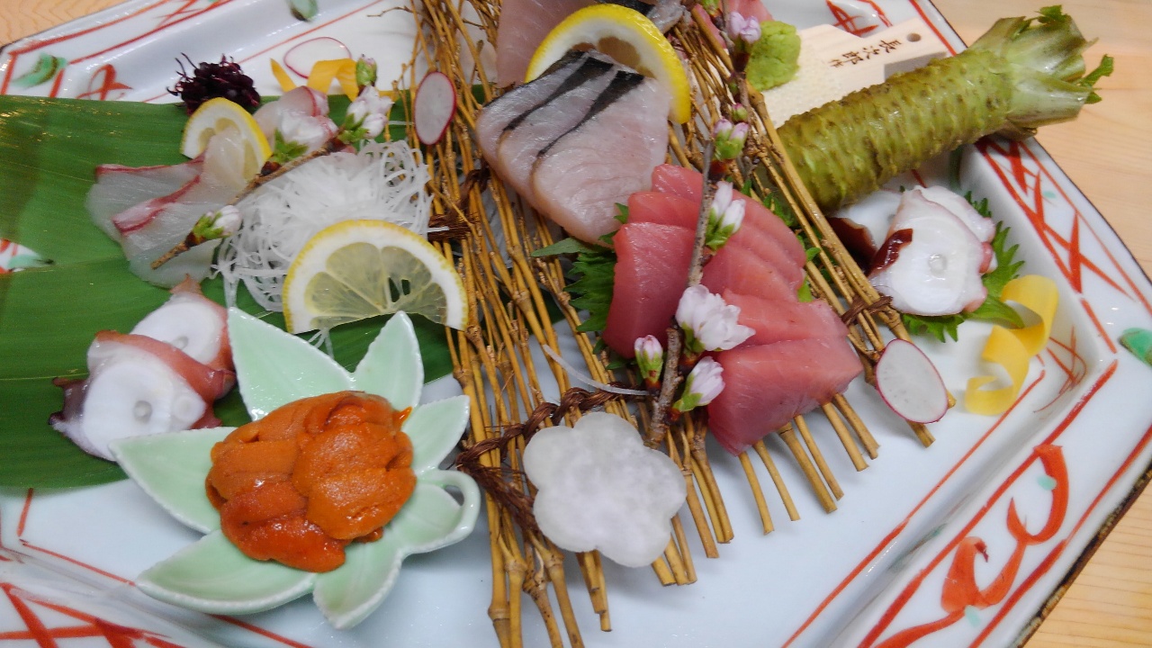- 食材: 螢光烏賊, 鱏鰭, 烏賊, 鮭魚, 柳葉魚