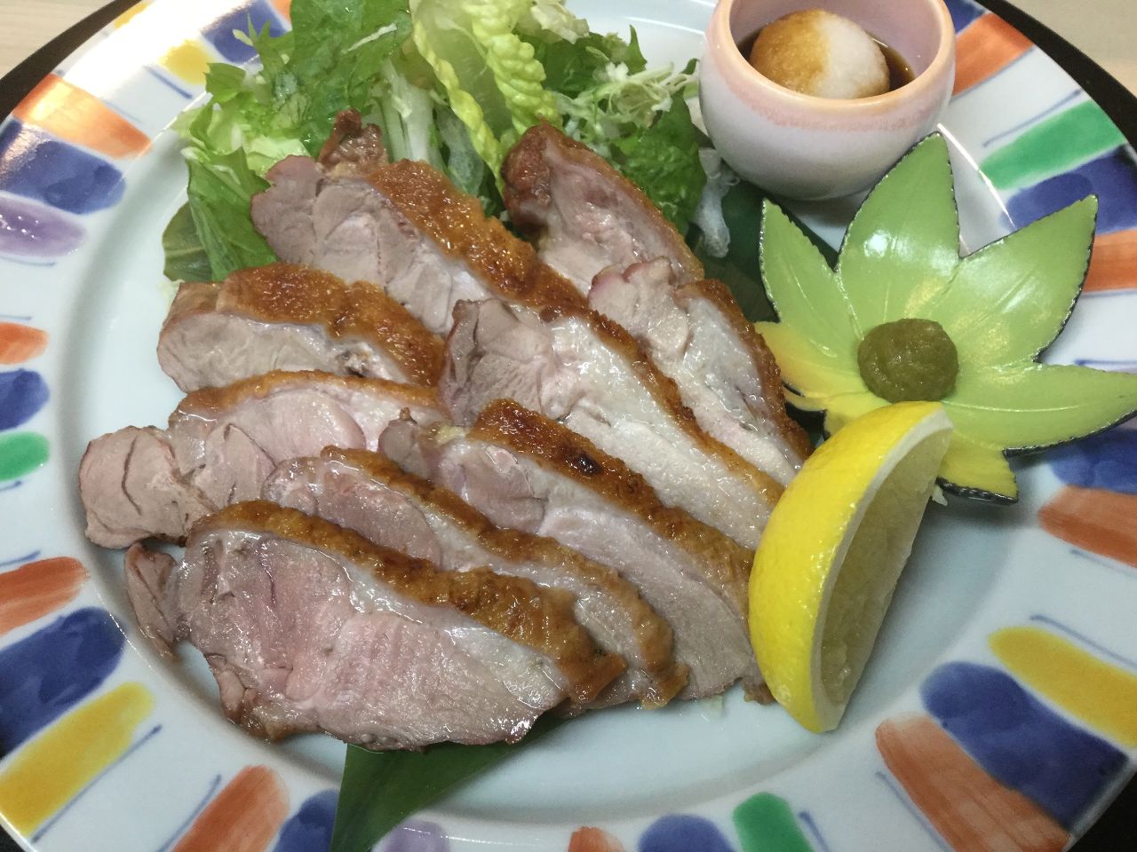 薄切魚板上加入芥末及醬油之料理。