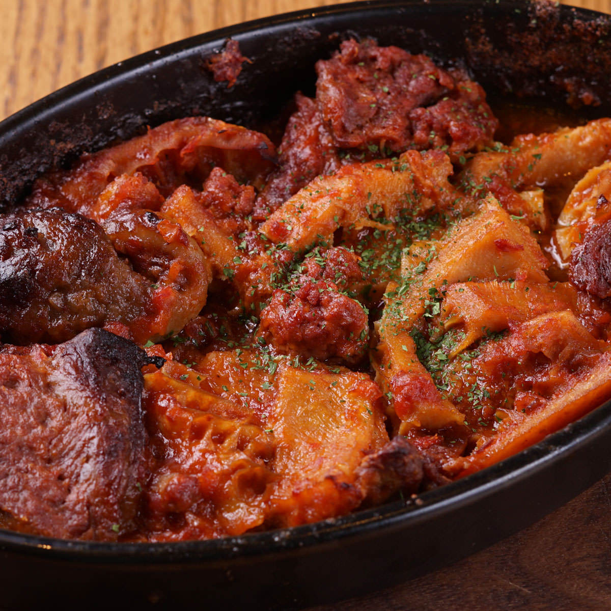 牛蜂巢胃, 牛內臟, 番茄, 大蒜, 起司, 牛筋肉