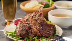 在手機上査看餐廳信息。