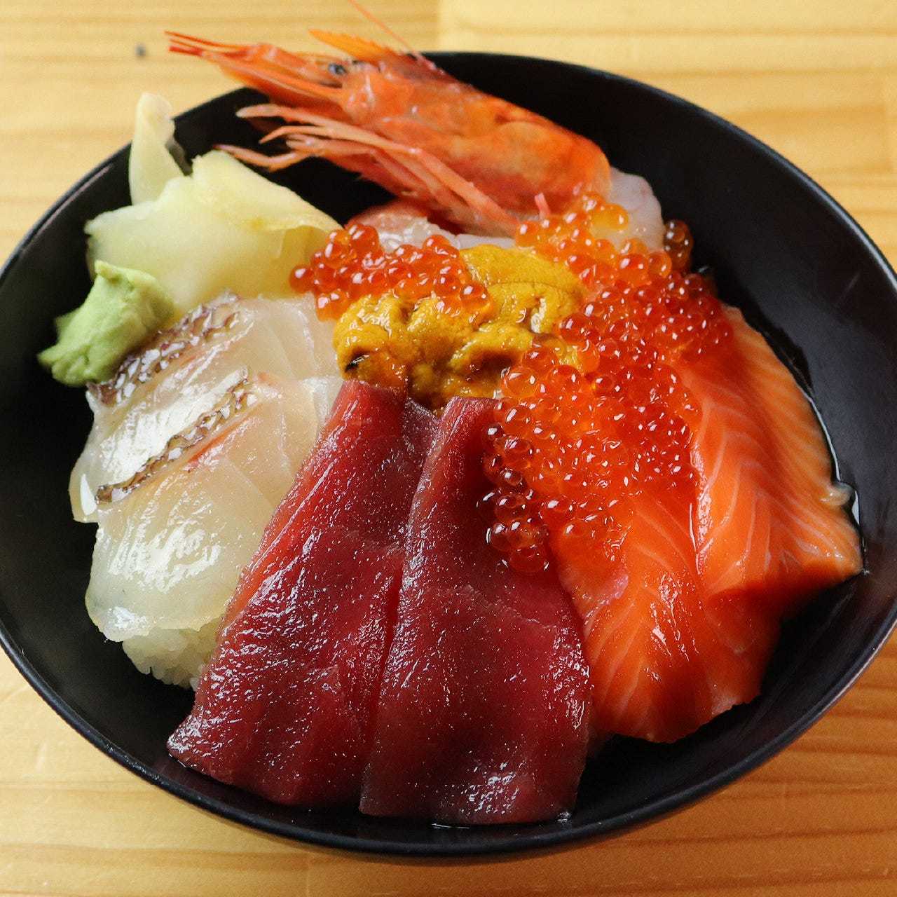 高級海鮮蓋飯—家康以大腹金槍魚為主,搭配新鮮海鮮鋪滿米飯。大腹金槍魚入口即化的美味令人陶醉,是海鮮愛好者無法抗拒的奢華蓋飯。