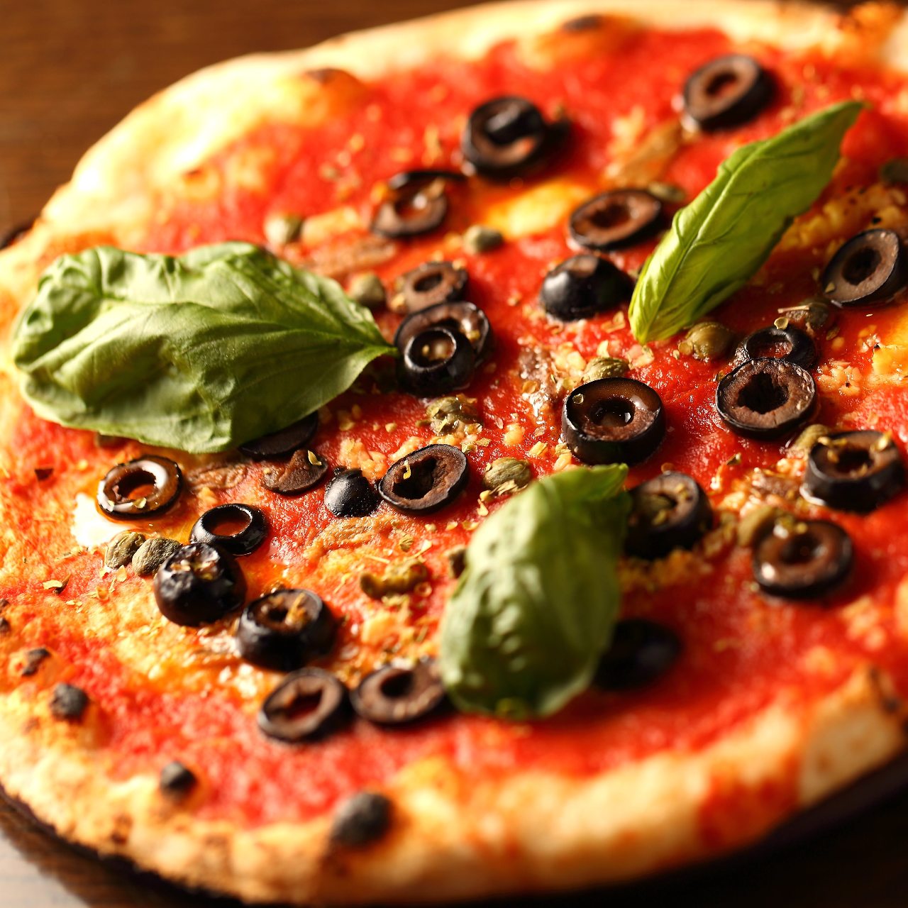 將披薩塗上番茄醬再放上起司和羅勒烤製的料理。