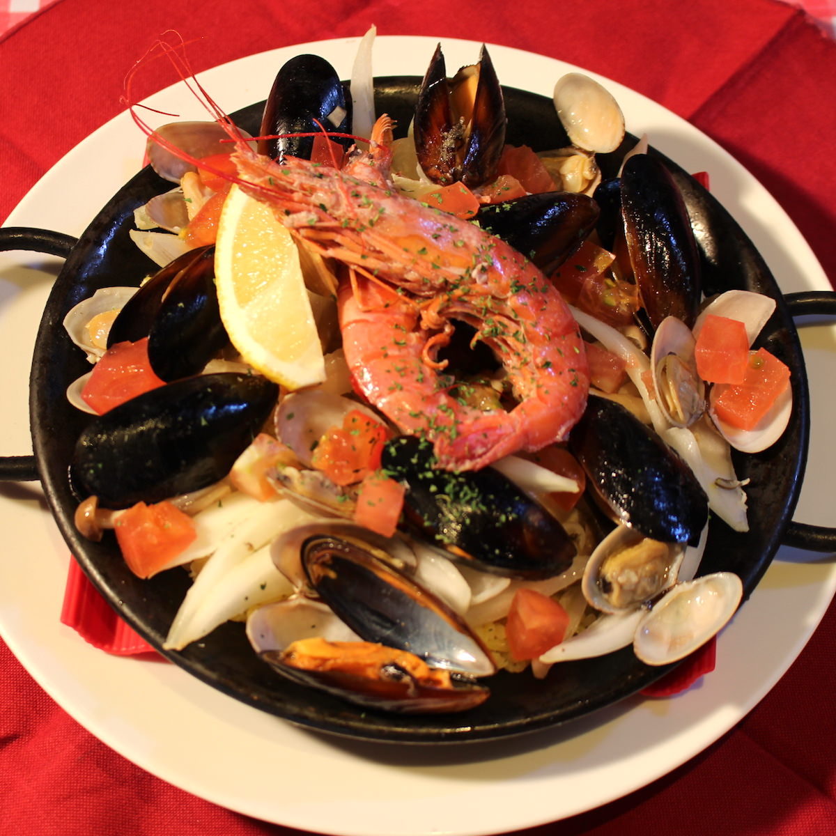 將海鮮和蔬菜炒製後同混合了番紅花的米一同煮製的西班牙料理。