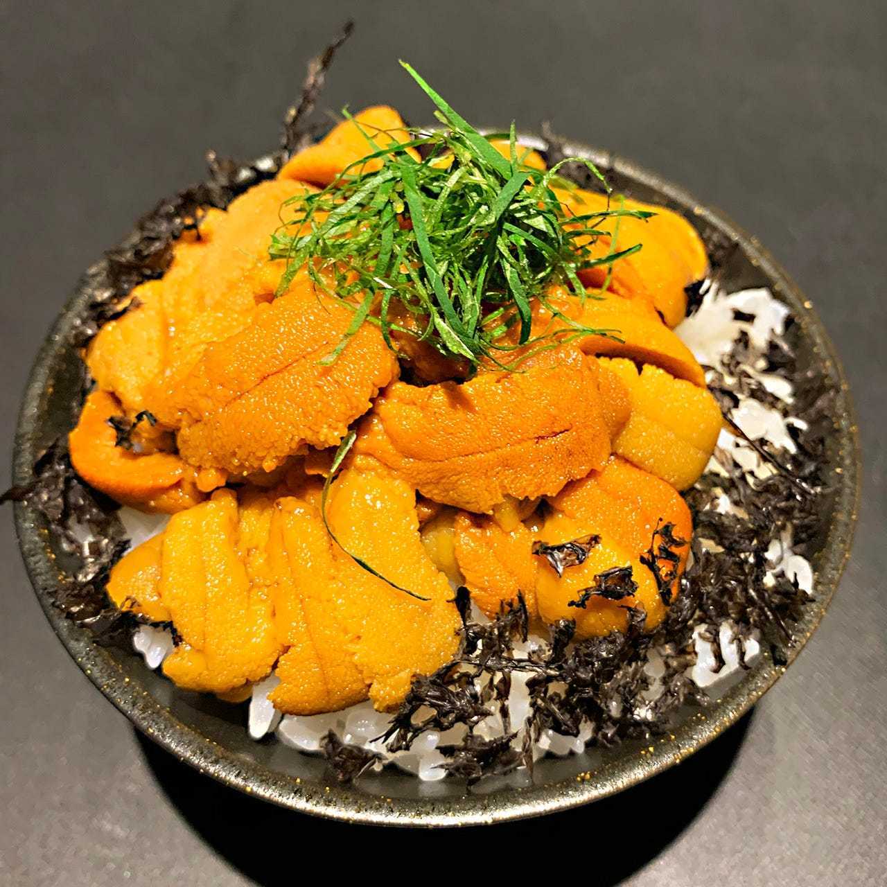用碗裝的飯蓋上生海膽的料理。