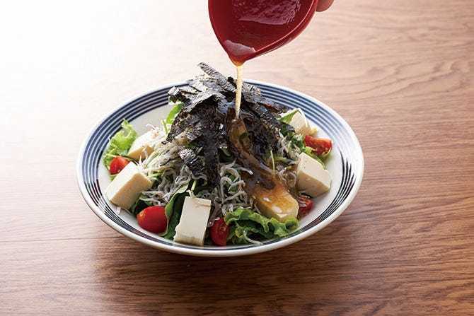 炒製魚和海鮮類,蔬菜,和龍鬚面混合,用調味料入味而成的料理。