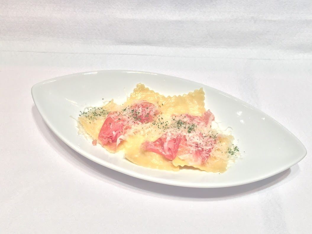 - 食材: 洋蔥, 生火腿, 帕馬森起司, 麵