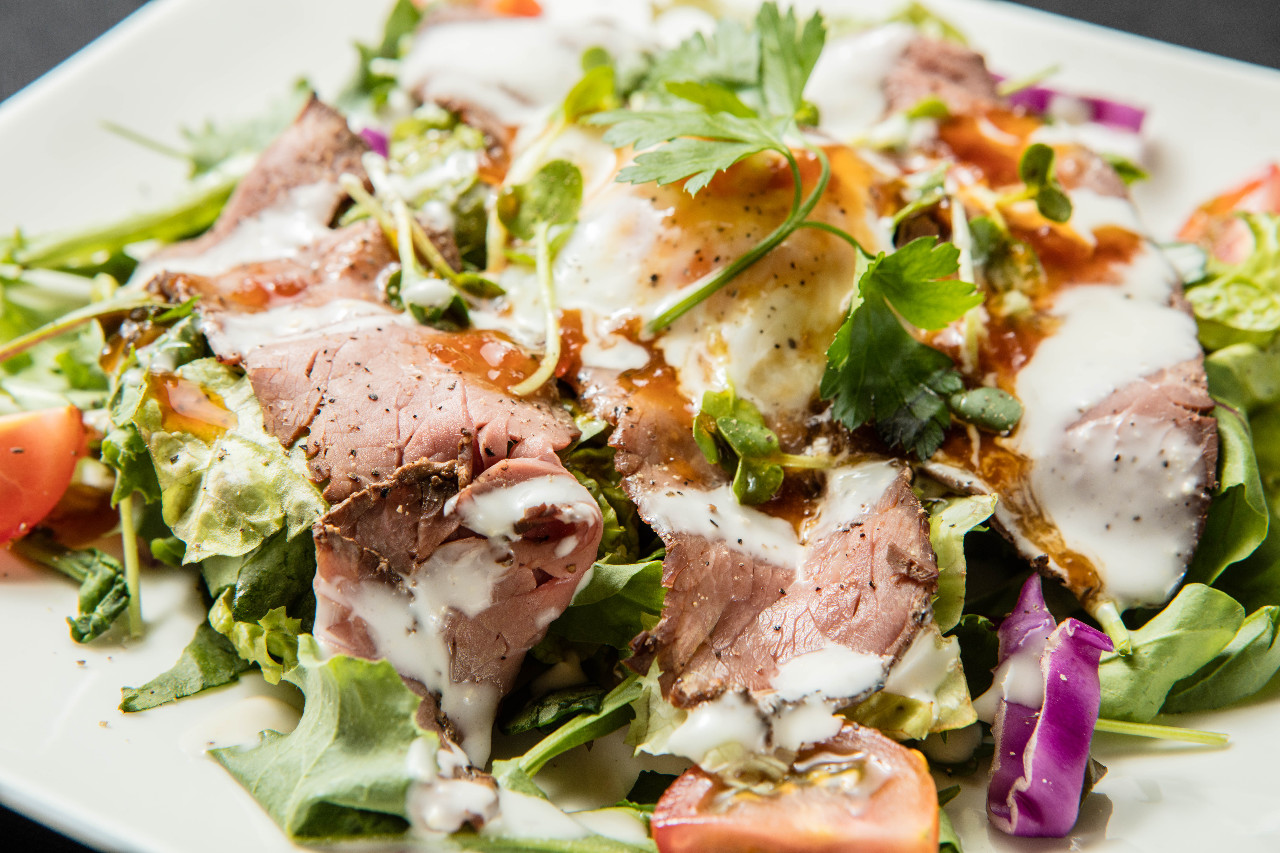 生火腿和奶酪的餐館沙拉