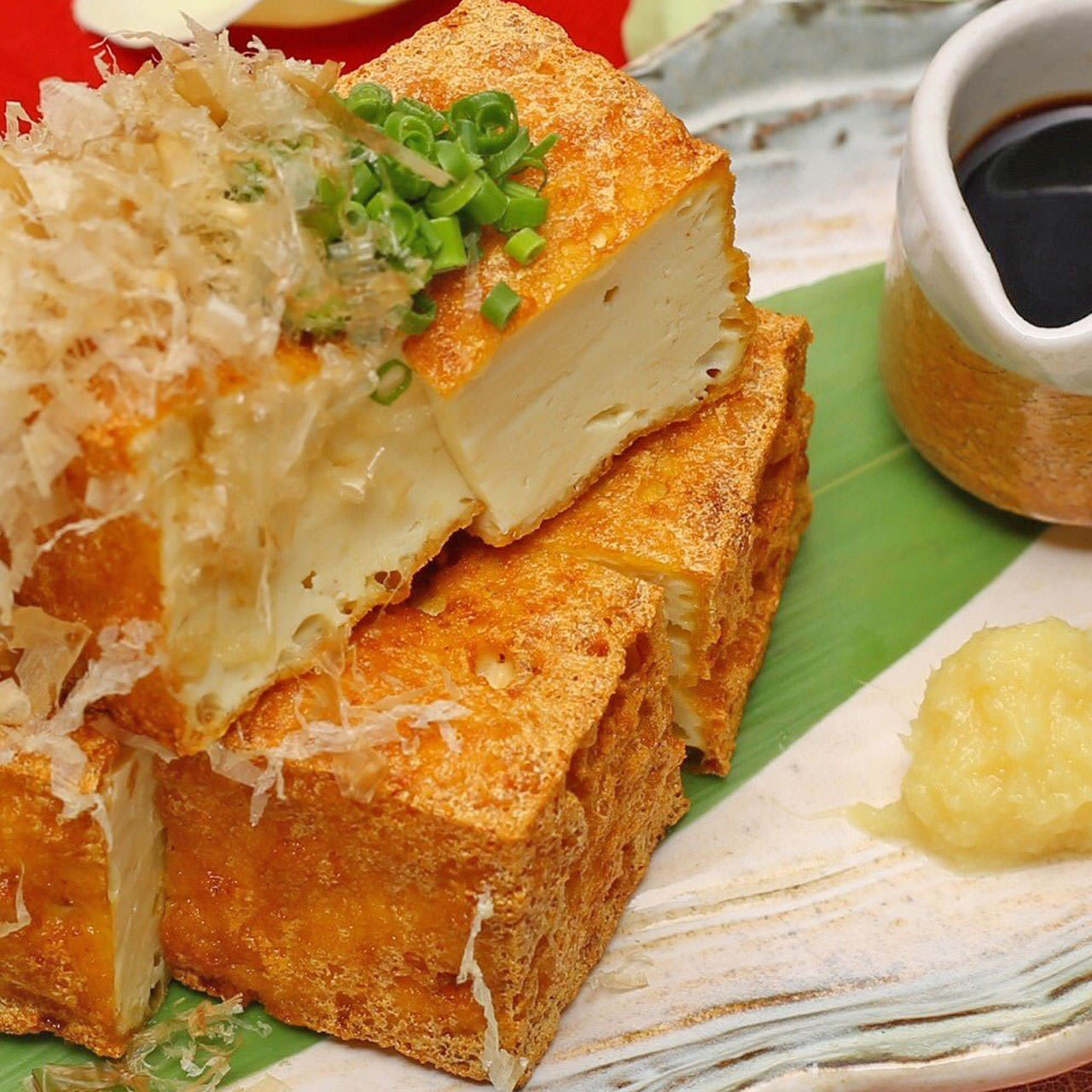將切成厚片的豆腐短暫油炸製成,一般使用在燉煮料理中。