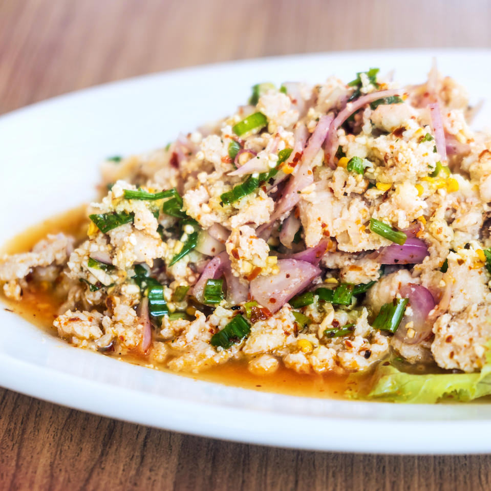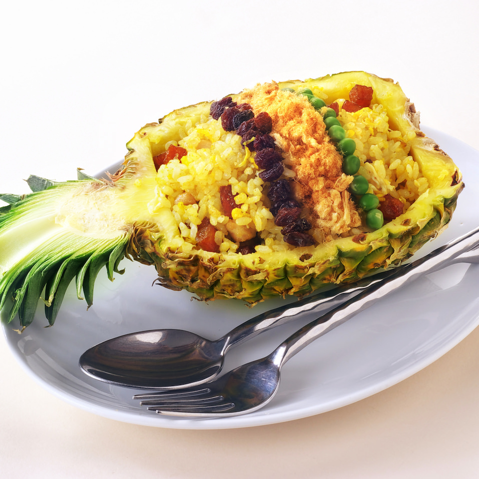 在米飯上澆上用香菜等泰國特有香料和香草,肉類,海鮮,鮮蔬等一起煮成的綠色咖喱。