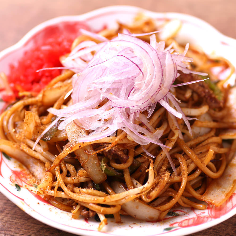 - 食材: 炒麵, 烏賊, 洋蔥
