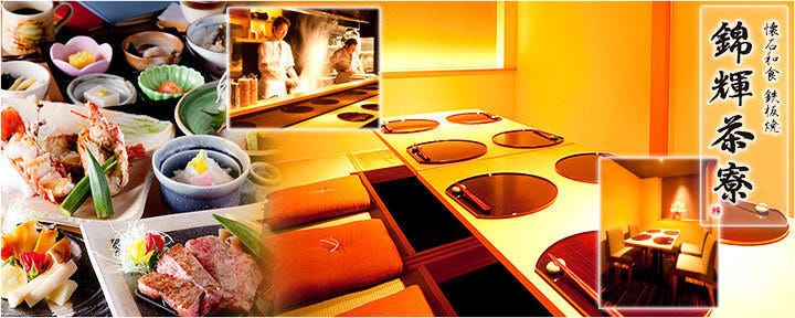 希望大家永遠光輝閃耀、以及本店能持續在錦3丁目輝耀的心願之下命名為「錦輝茶寮」。依照您的需求可多方面的利用。【懐石鉄板套餐】每位來賓可以依自己的喜好選擇主菜。除了接待貴賓外也非常適合私人聚餐【筵席套餐】菜色齊全並且適時順暢的提供料理、特別推薦您接待或宴會等場合利用。桌席包廂・・・4名×3間(最多12名)日式包廂・・・4名×3間(最多8名)吧檯・・・~6名 力求您的滿足度、不管您有任何需求我們都會全力服務。請在錦三丁目的包廂空間裏盡情享受『日式精緻的接待』。店主