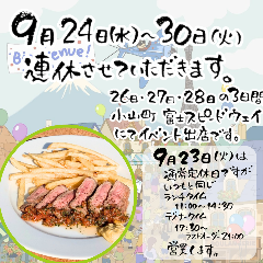 午餐:11:00~14:30(L.O.14:00), 晚餐:17:30~21:00(L.O.21:00)
