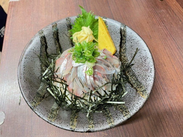 將切成薄片的魚肉上澆上橄欖油,鹽和胡椒的料理。