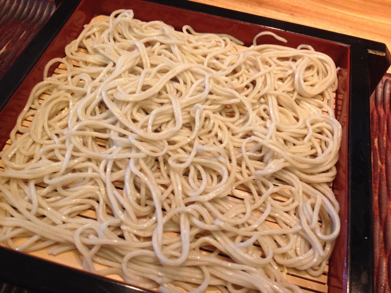 加了天婦羅,盛在笊籬上的蕎麥麵。